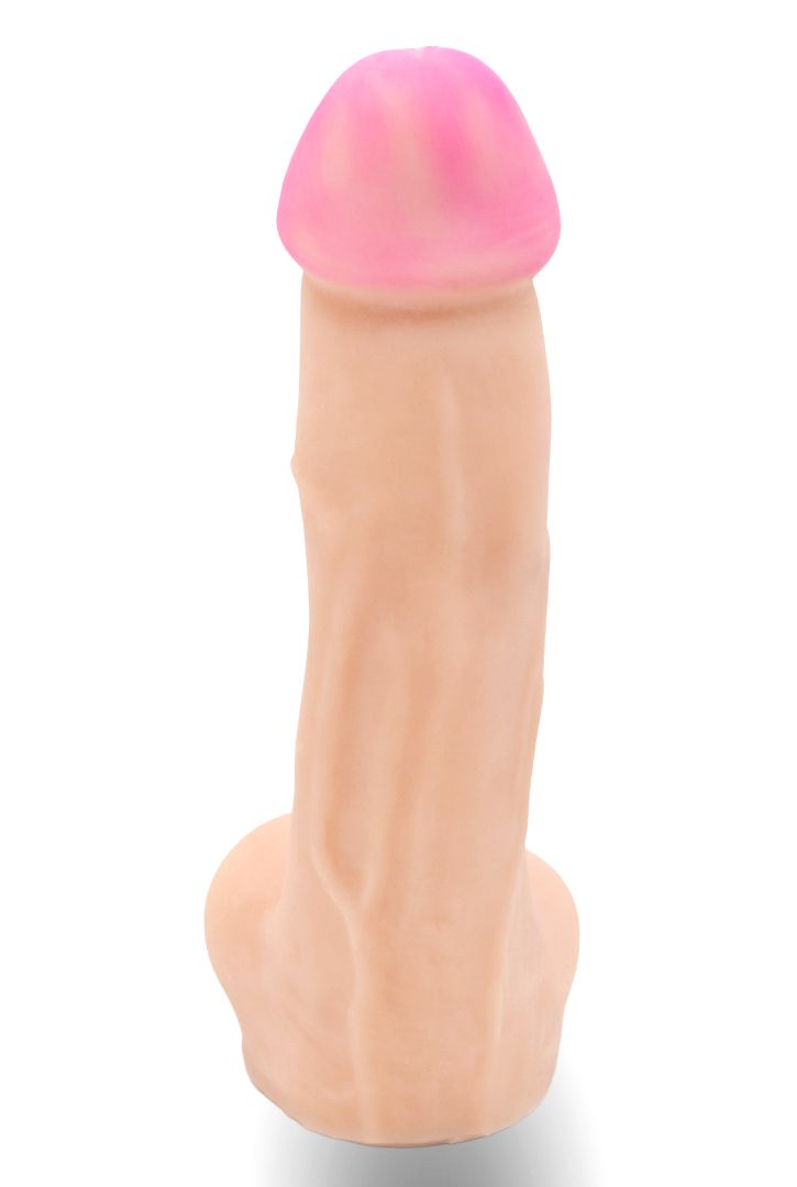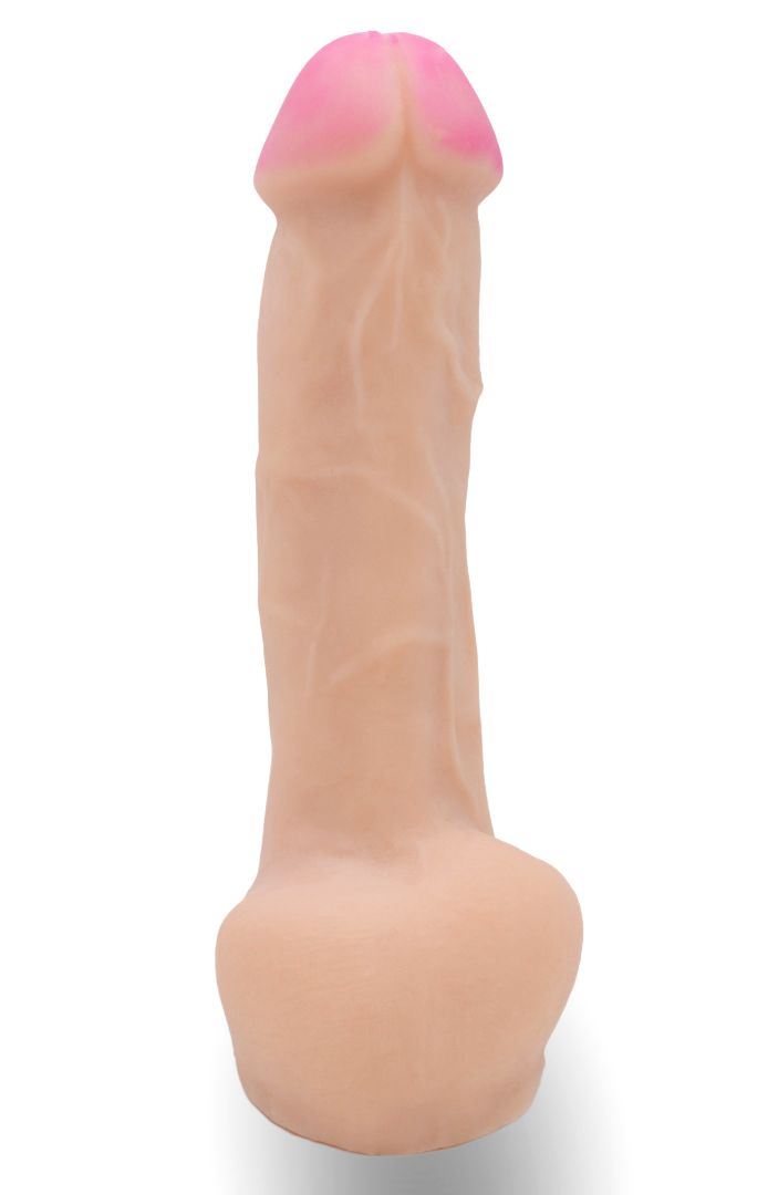 Это распространенный размер, подходящий большинству рожавших женщин. Реалистик имеет изгиб. За счет этого его можно вращать на бобышке, менять направление и даже ласкать мошонкой клитор. Имеет характеристики эрегированного мужского пениса. Рабочая длина - 18,5 см.