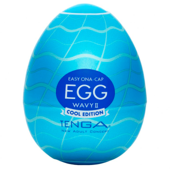 Компактный мастурбатор яйцо Tenga Egg Wavy II из серии Cool Edition идёт в комплекте с охлаждающим лубрикантом для новых, освежающих ощущений.
