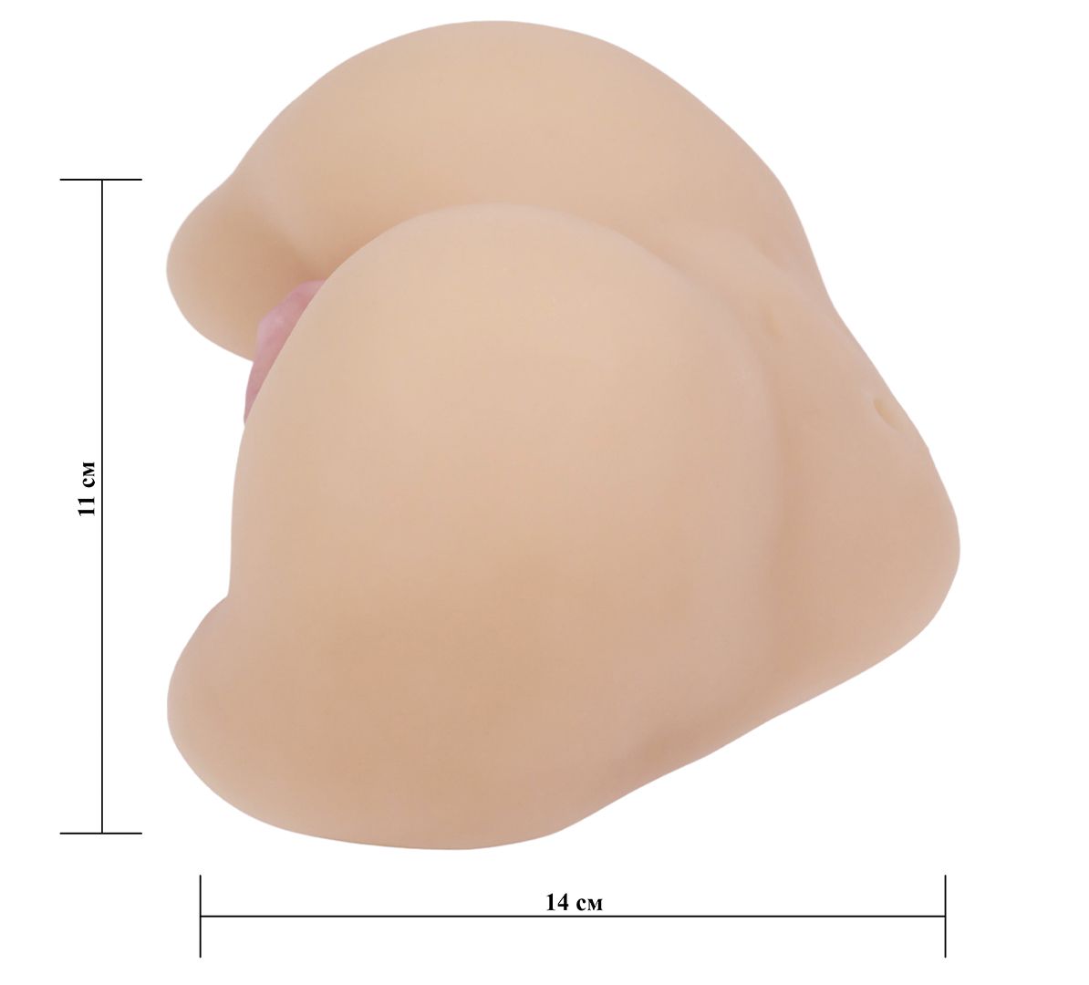 Тугая вагина, вход в которую обрамлён розовыми лепестками половых губ, обещает вашему члену страстные объятия и чувственное скольжение. Размеры - 18 х 14 х 11 см.