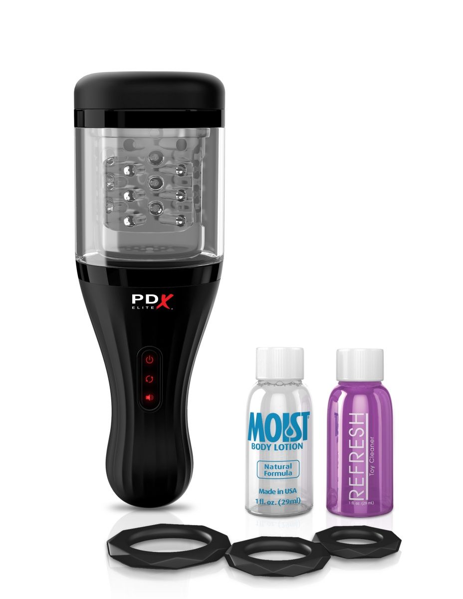 Рукоятка мастурбатора PDX Elite Talk Dirty Rotobator имеет эргономичный дизайн, матовую поверхность и тонкие канавки, которые обеспечивают прочный захват.