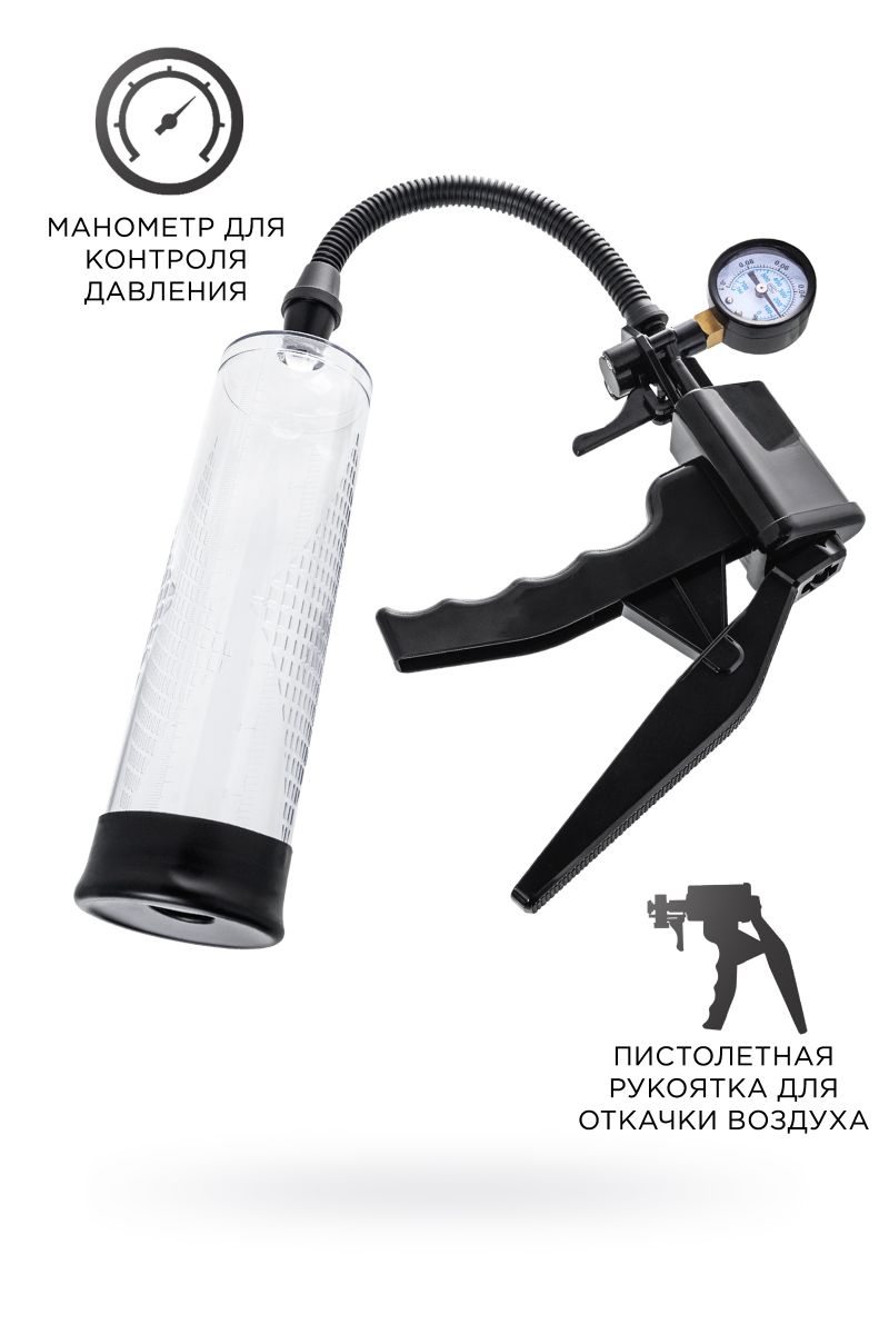 С помпой Viggo серии Sexus Men Training легко управлять своими тренировками по пенбилдингу, усиливать эрекцию и получать новые ощущения от полового акта. Для тренировки, а также чтобы подготовить себя к длительному и яркому сексу, вставьте свой пенис в колбу и откачайте воздух с помощью рычага с пистолетной рукояткой. Благодаря отрицательному давлению увеличивается приток крови к половому члену, за уровнем давления удобно следить с помощью встроенного манометра.