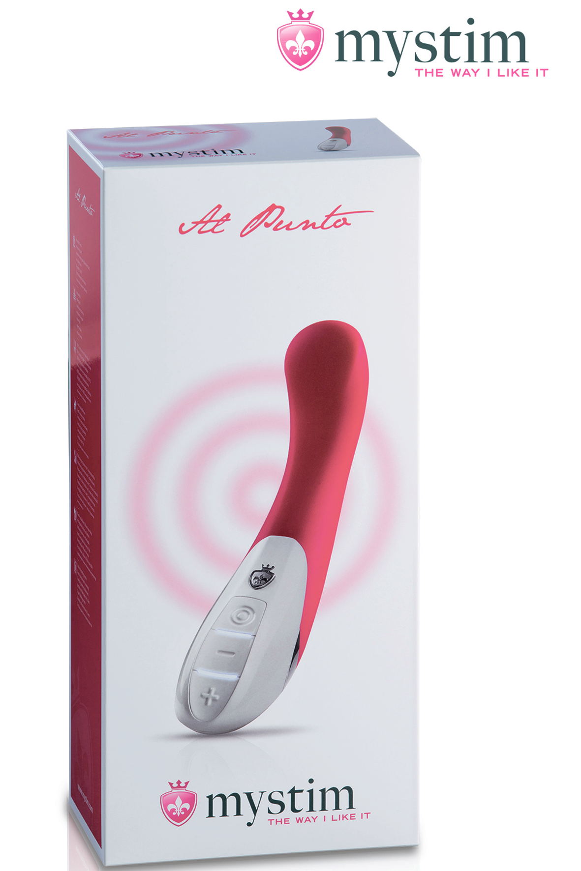 Вибратор Mystim Al Punto - прямо в точку! Он изогнут таким образом, что кончик вибратора попадает точно на точку G. Из двух встроенных моторчиков один расположен именно в этом G-кончике.