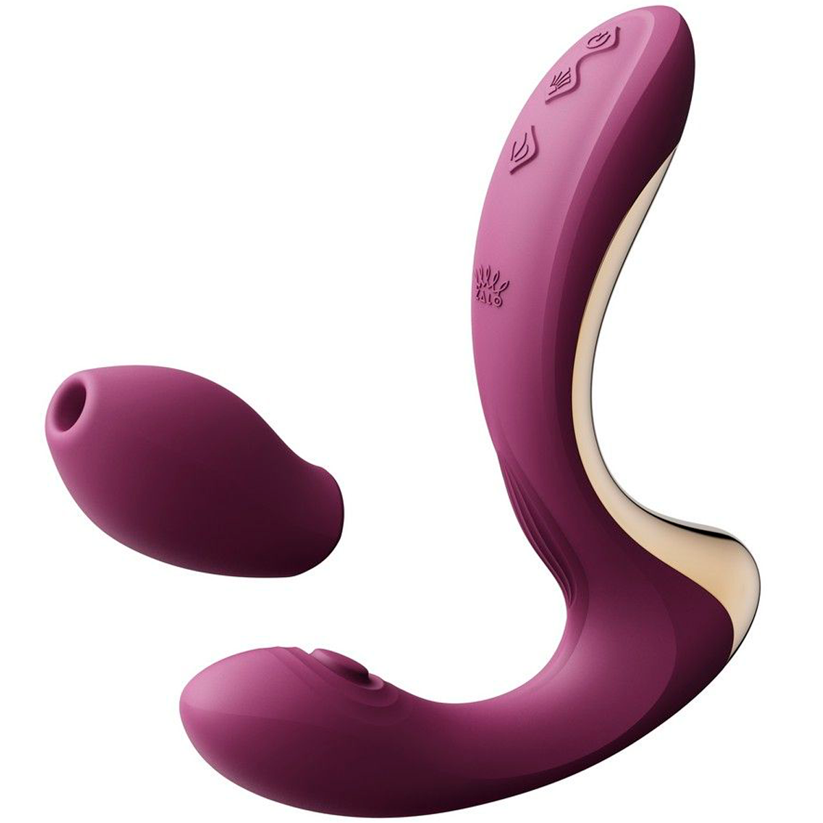 Вибратор-кролик Zalo Talis одновременно стимулирует клитор и зону G, воздействуя на них 6 вибро-режимами, 6 паттернами пульсацией и функцией нагрева до 37 градусов, которая добавляет естественного тепла для более реалистичных ощущений, а за счёт съёмной насадки внешнюю часть можно превратить и вакуумно-волновой стимулятор клитора.