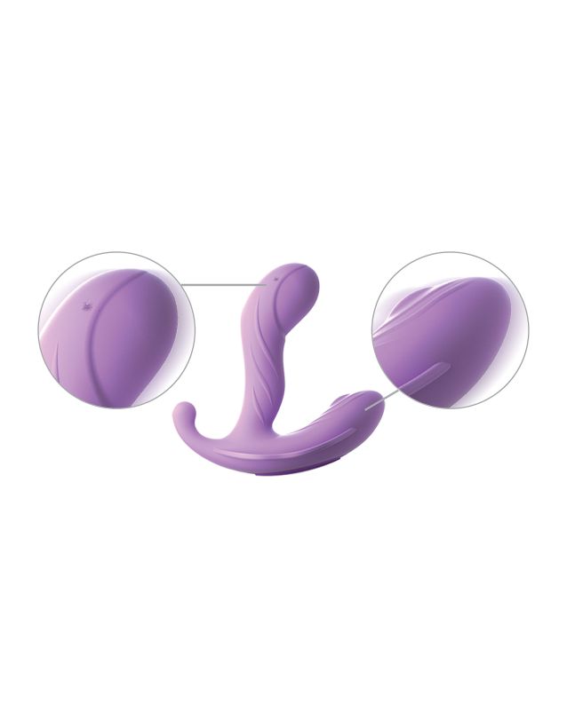 Вибратор Fantasy For Her G-Spot Stimulate-Her имеет три отростка для одновременной вагинальной стимуляции зоны G, вульвы с клитором, а также промежности и преддверия анального отверстия. Вибратор усилен функцией нагрева до 40 градусов по Цельсию и двумя виброэлементами с 20 режимами вибрации.