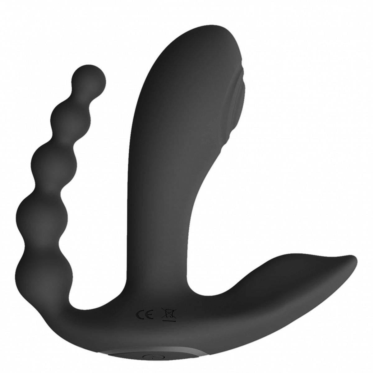 Черный вибромассажер Kata с анальным и клиторальным стимуляторами - 12 см.