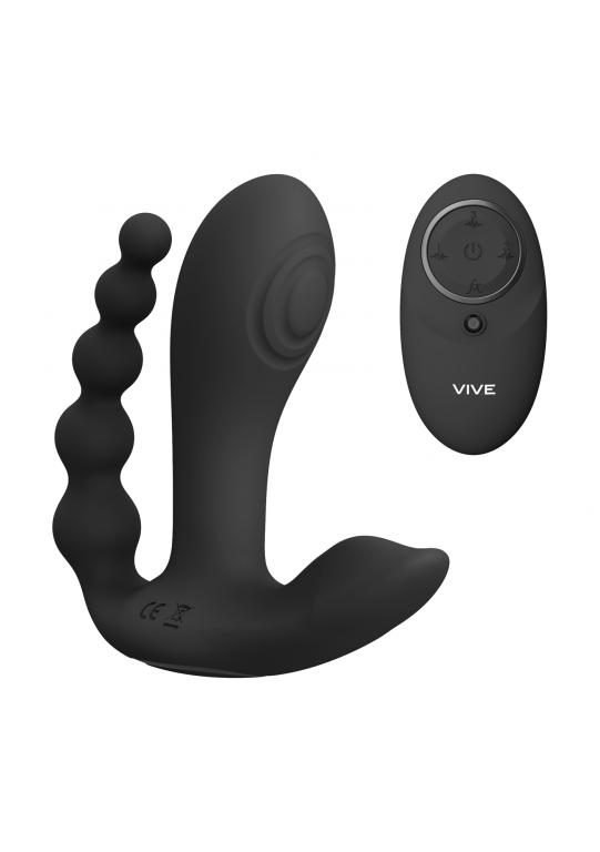 Kata – это инновационный вибратор со стимуляцией всех самых чувствительных точек, разработанный с учетом женской анатомии. Оснащен 3 мощными независимыми моторами: импульсно-волновой в головке для активной стимуляции точки G, вибрационный мотор клиторальном отростке и в анальной цепочке. Имеет пульт управления, комфортно помещается в трусики и подходит для бесконтактных скрытых развлечений. Средний радиус действия пульта 5 метров. Пульт работает от аккумулятора и заряжается той же зарядкой, что и сам вибратор! Изготовлено изделие из шелковистого медицинского гипоаллергенного силикона и как большинство моделей линейки VIVE имеет кнопку мгновенного оргазма, запуская все моторы на максимум одним касанием. Такой вибратор можно брать с собой в ванную и душ. Рабочая длина - 9,5 см.