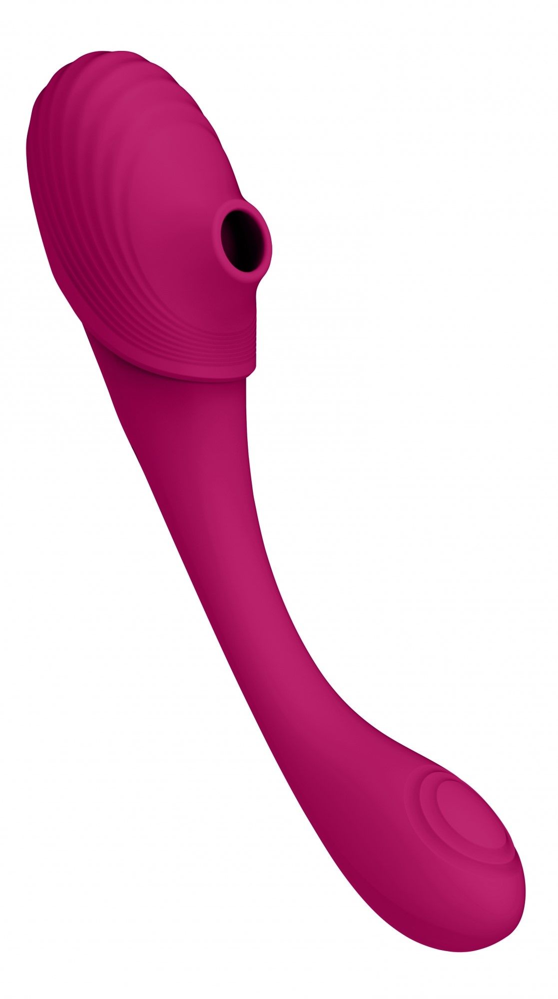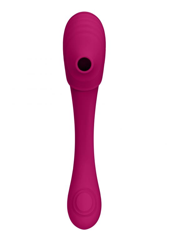 Розовый двусторонний гибкий импульсно-волновой вибромассажер Mirai - 23,4 см.