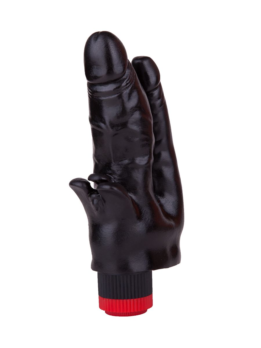 Этот вибромассажёр чёрного цвета, выполненный из упругого и приятного на ощупь поливинилхлорида, отличается от конкурентов своей многофункциональностью. По сути, это два вибратора, слившихся у основания и дополненных мяконькими лепестками для клиторальной стимуляции.