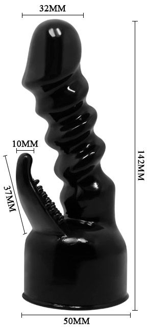 Чёрная насадка на вибромассажёр для клиторально-вагинального массажа
