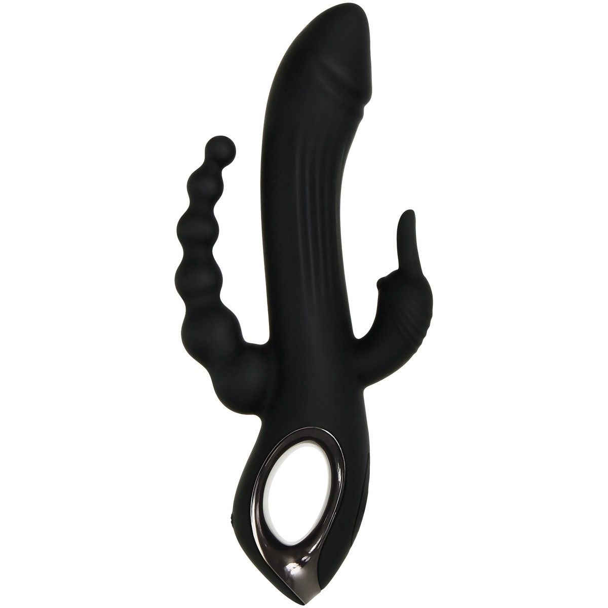 Черный вибромассажер с тройной стимуляцией Trifecta - 21,6 см.