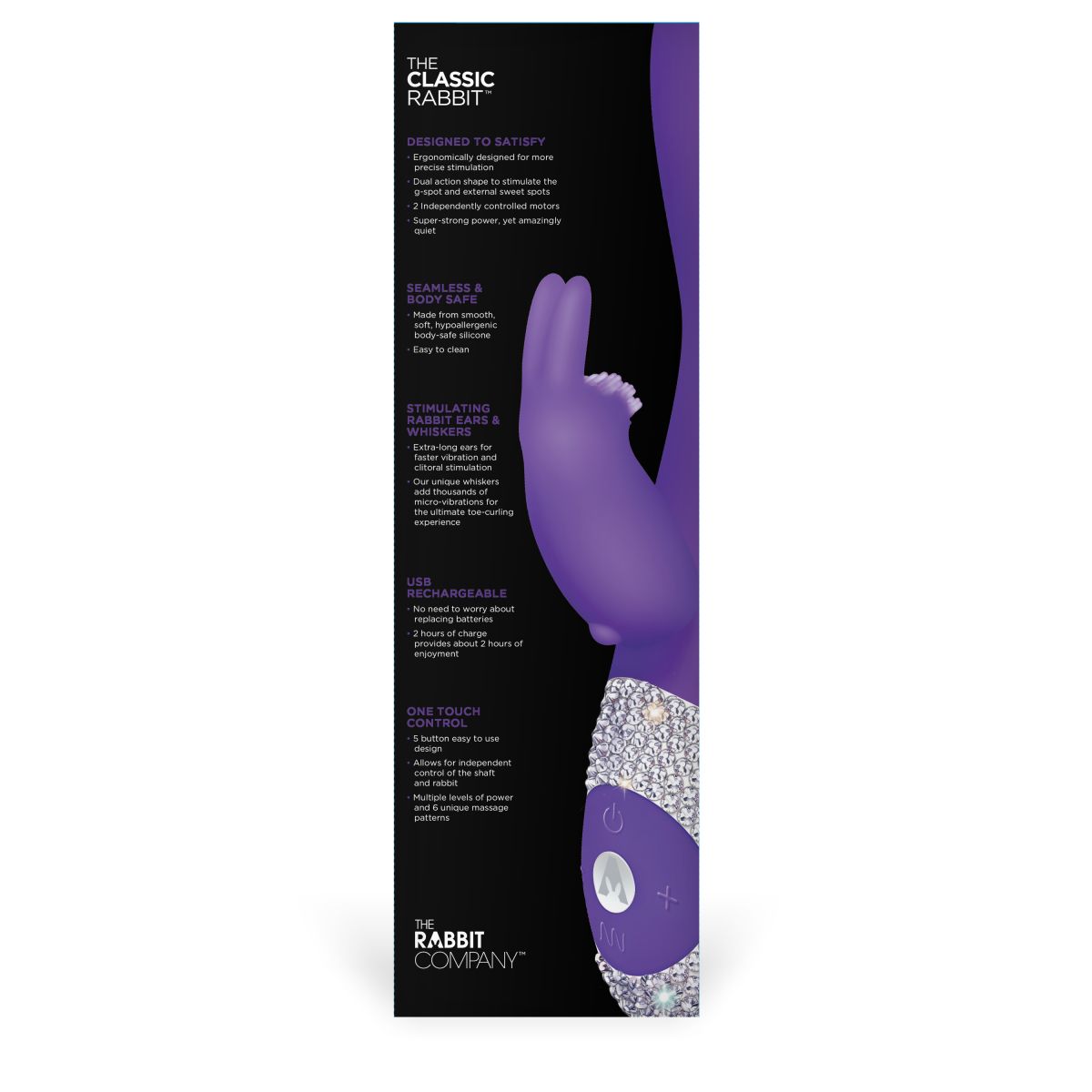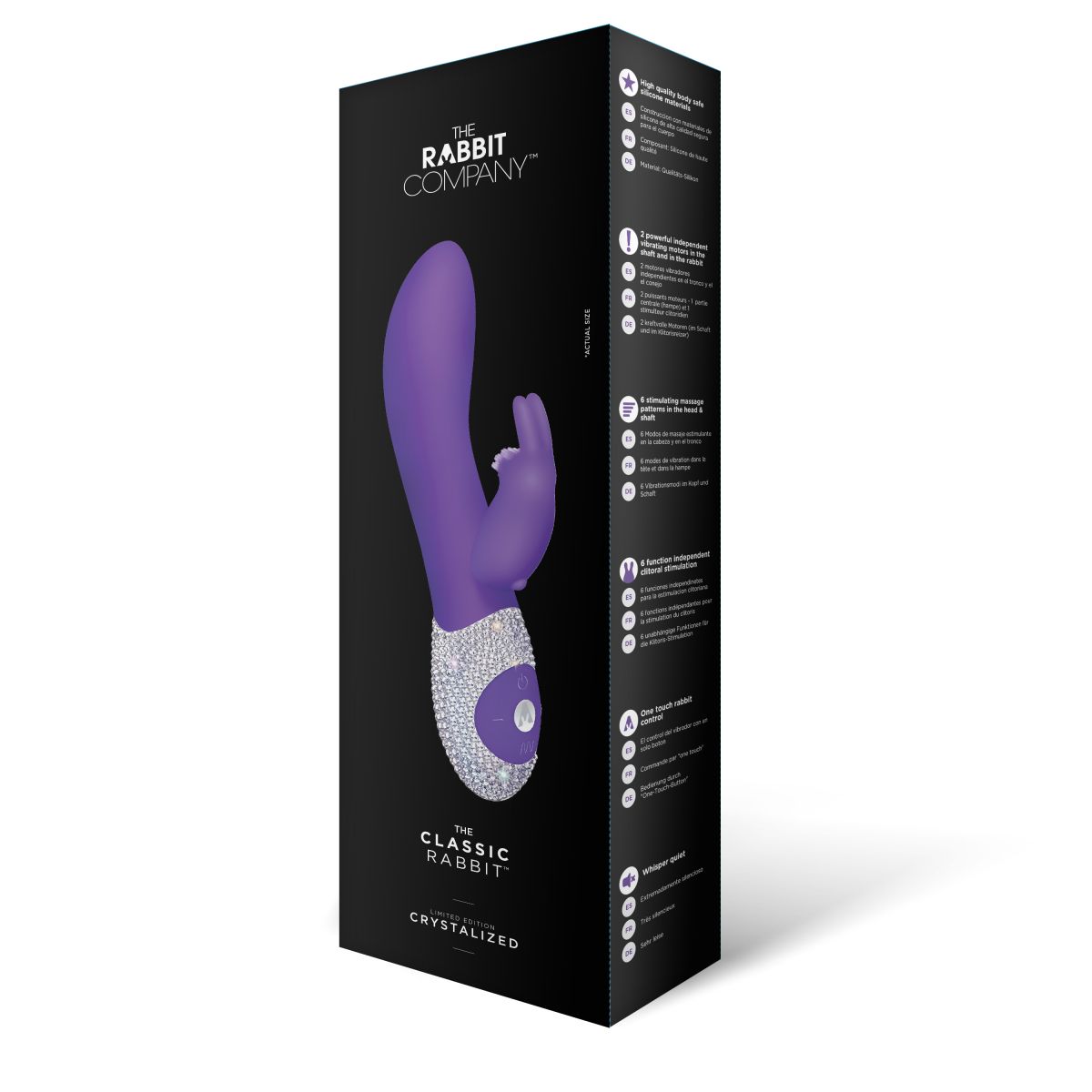 Фиолетовый вибромассажёр с клиторальным отростком и отделанной стразами рукоятью The Classic Rabbit - 22 см.