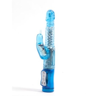 Голубой вибратор с двумя моторами и двухсторонней ротацией - 24,5 см.