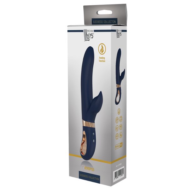 Как и другие игрушки из коллекции Goddess, Atropos сделан из темно-синего силикона с золотыми деталями. Элегантный двойной вибратор имеет круглую ручку с металлическим покрытием, благодаря чему его удобно держать в руке и он выглядит роскошно. Этот двойной вибратор, изготовленный из силикона, имеет мягкий кончик и гладкий на ощупь. Atropos имеет изогнутый ствол, который идеально подходит для стимуляции точки G. Благодаря мощному двигателю этот двойной вибратор обязательно создаст сильные вибрации как в стволе, так и в стимуляторе клитора, а благодаря 7 ритмам вибрации и 3 скоростям вы найдете идеальную вибрацию на любой вкус. Чтобы сделать ощущения еще более приятными, Atropos имеет функцию нагрева. Не стесняйтесь использовать Atropos в душе или ванне, он полностью водонепроницаем. В комплекте магнитный USB-кабель для подзарядки. Продолжительность зарядки 4 часа. Продолжительность использования 90 минут на максимальной скорости. Безопасен для тела, не содержит фталатов и латекса.