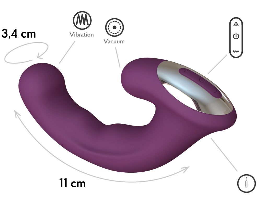 Роскошный вибратор Phoenix – это потрясающий своей функциональностью девайс! С ним каждый новый оргазм будет уникальным за счет большого разнообразия сочетаний 8-ми режимов глубокой вибрации и 10-ти уносящих в космос интенсивностей вакуумной стимуляции. Анатомический изгиб на конце вводимой части гарантирует плотное прилегание и феерические ощущения в области точки G, а регулируемая бесконтактная стимуляция клитора доведет Вас до пика двойного оргазма! Приятный на ощупь материал не вызывает аллергии и раздражения, а 1,5 часа работы без подзарядки гарантируют длительное наслаждение. DC зарядка и перезаряжаемый аккумулятор. Рабочая длина - 11 см.