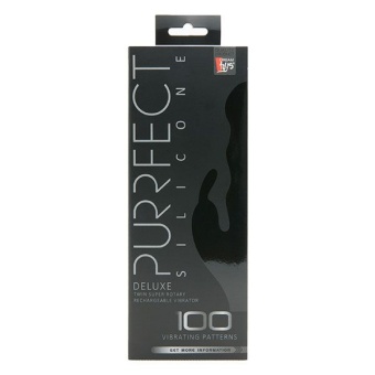 Фиолетовый вибратор с клиторальным стимулятором PURRFECT SILICONE DELUXE RABBIT 100FNCT. 10 режимов вибрации и 10 скоростей на каждый режим.