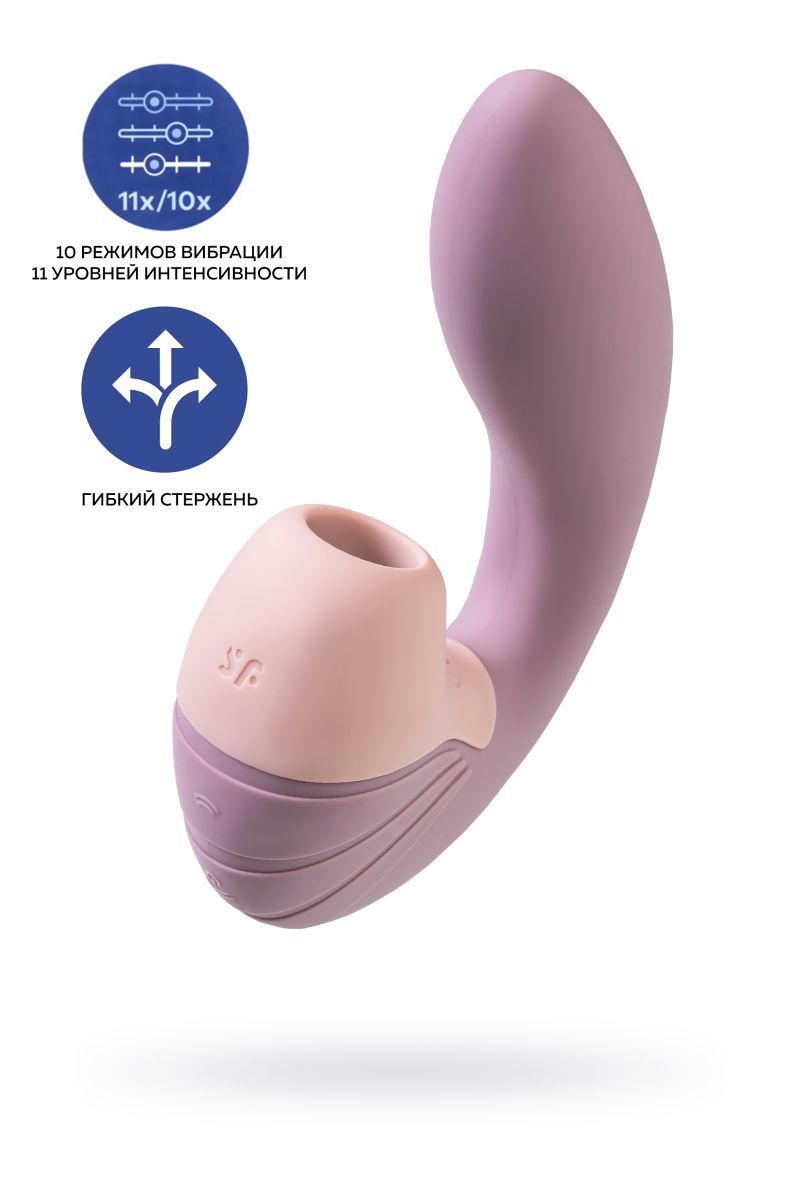 Игрушка Satisfyer Supernova предназначена для единовременной стимуляции клитора и зоны G. Специально для этого представлены 11 уровней интенсивности клиторального отростка, которые подарят чувственные, воздушные пульсации, а вагинальный фиксирующийся стержень - 10 различных паттернов вибрации.