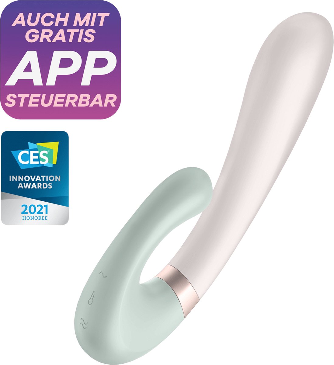 Вибратор Satisfyer Heat Wave имеет необычайно плавный дизайн: изгиб основного кончика переходит в округлую ручку и маленький клиторальный стимулятор для двойного удовольствия. Благодаря широкому вагинальному отростку и наклону игрушка идеально подходит для воздействия на зону G. Длина проникновения составляет 15 см, а максимальный диаметр 3,5 см. Особенно хорошо подобную стимуляцию совмещать с функцией нагрева до 39 градусов — горячие вибраторы не только согреют вас в холодный сезон, но также и повысят возбуждение и чувствительность в любое время года и суток.