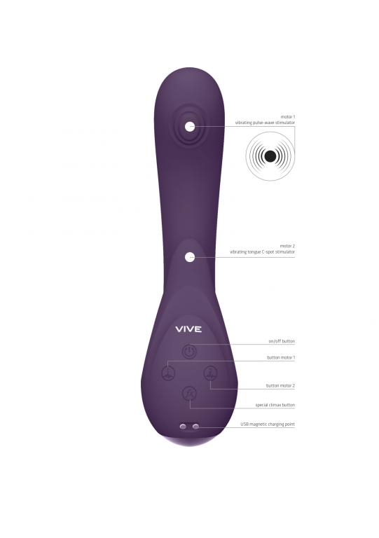 Miki – это милый и нежный, но мощный вибратор-кролик, разработанный с учетом женской анатомии. Он оснащен 3 мощными независимыми моторами нового поколения F1: импульсно-волновой, расположенный в головке для активной стимуляции зоны G, вибрационные моторы в клиторальном отростке и головке вибратора. Клиторальный отросток выполнен с функцией мерцающего язычка. Изготовлено изделие из шелковистого медицинского (гипоаллергенного) силикона и как большинство моделей линейки VIVE имеет кнопку мгновенного оргазма, запуская все моторы на максимум одним касанием. Такой вибратор можно брать с собой в ванную и душ.