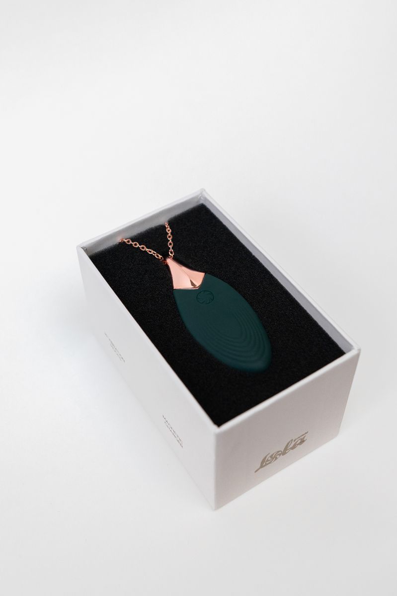 Элегантный и провокационный вибратор в форме зеленого листочка, который можно носить как ожерелье и который может похвастаться десятью различными режимами вибрации, станет манифестом, провозглашающим ваше право на удовольствие. С этим аксессуаром становится возможным испытывать удовольствие в любом месте, потому что он всегда с вами. Цепочка из нержавеющей стали длиной 55 см нежного оттенка розового золота, делает вибратор идеальным для ношения в качестве стильного аксессуара. Одной из наиболее примечательных особенностей игрушки является ее бесшумная работа, что делает ее достаточно незаметной для использования в общественных местах. Кроме того, игрушка водонепроницаема по стандарту IPX6 и оснащена магнитной зарядкой. Изготовлена из бархатистого гипоаллергенного силикона стандарта FDA. Длина цепочки - 55 см.