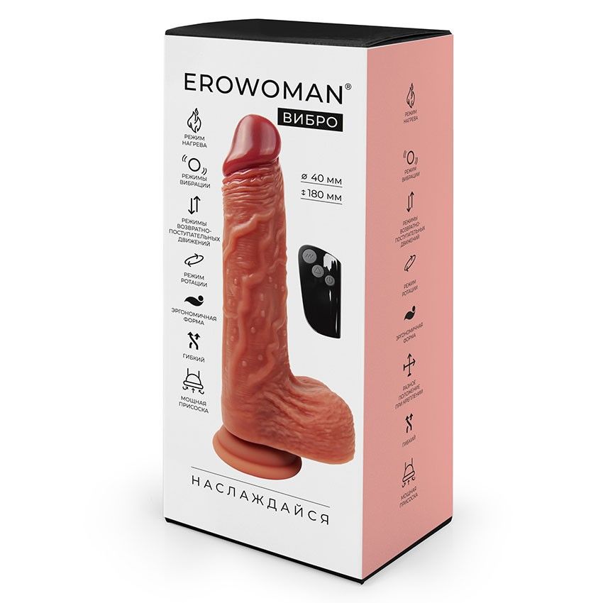 Форма в виде пениса, естественный оттенок поверхности, ярко выраженные венки и складочки, хорошо очерченные головка и мошонка придают секс-игрушке максимальной реалистичности. Вибрация, разные режимы ротации и возвратно-поступательных движений, нагрев, мягкая головка, приятный на ощупь материал усиливают возбуждение и доводят до пика наслаждения. Жёсткий ствол дарит чувство заполненности и обеспечивает незабываемые ощущения. Присоска надёжно удерживает изделие на ровной горизонтальной или вертикальной поверхности.
