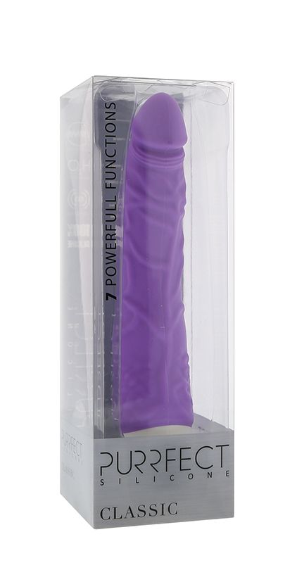 Фиолетовый вибратор-реалистик PURRFECT SILICONE CLASSIC 7.1INCH PURPLE. Мультискоростной. Приятный на ощупь.