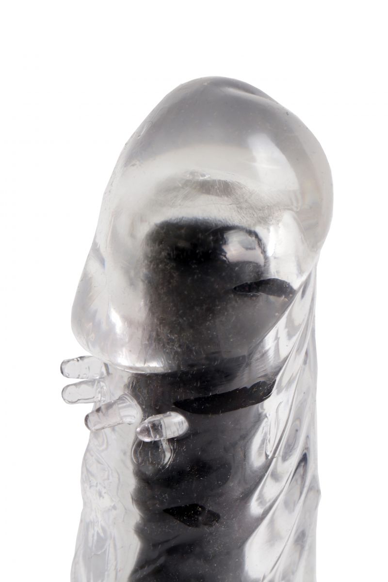 Прозрачно-черный вибратор с дополнительными пупырышками - 17 см.