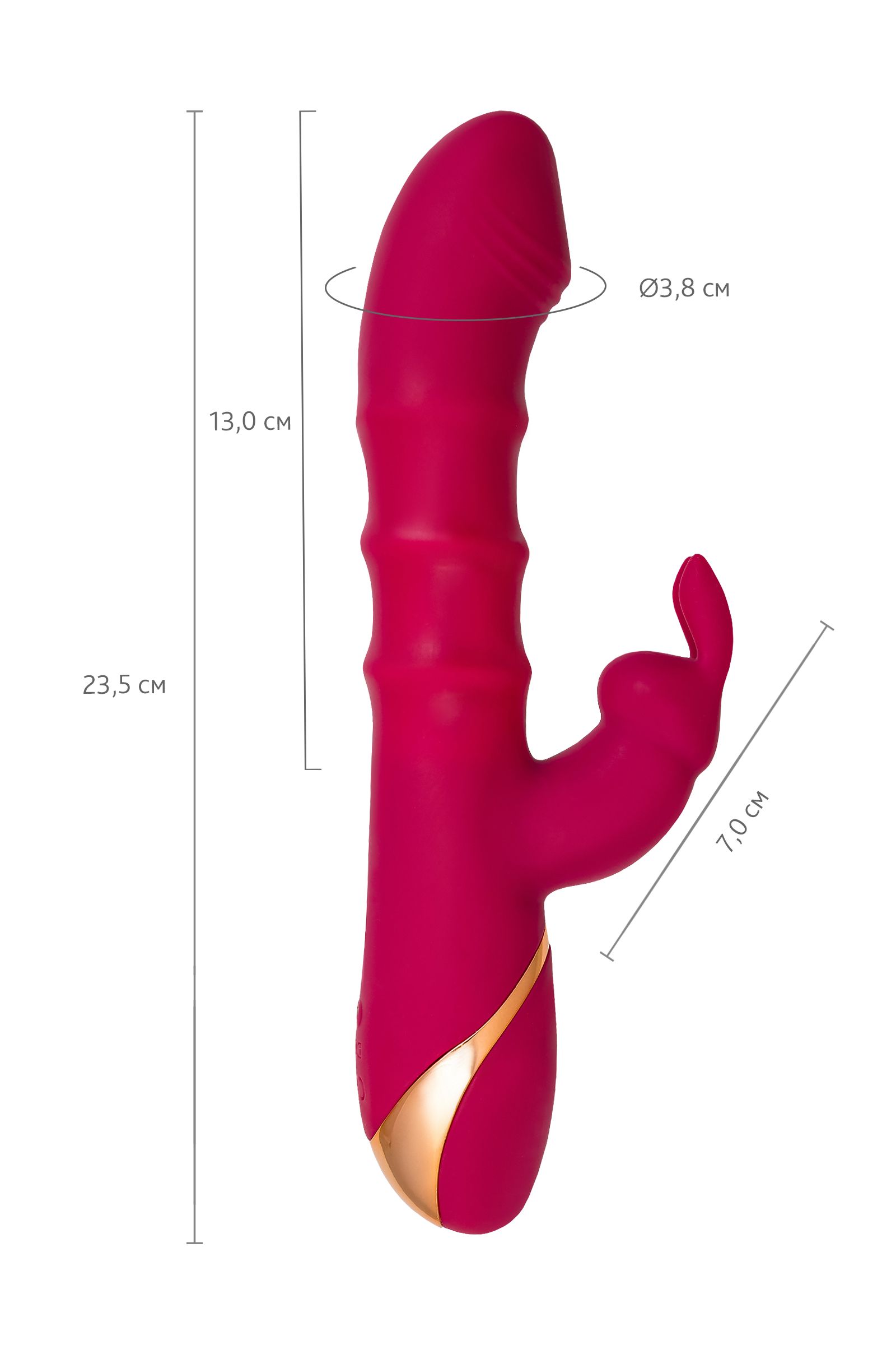 Tenty от Jos — это твой билет в мир чувственных удовольствий и фантазий, где каждый момент наполнен страстью и удивительными ощущениями. Этот виброкролик с двигающимися кольцами создан для тех, кто готов исследовать новые горизонты наслаждения. Классическая форма вибратора идеально подходит для двойной стимуляции, мягко и интенсивно воздействуя на точку G и клитор одновременно. Ты почувствуешь, как твои желания пробуждаются с каждым движением. Фишка Tenty — это подвижные упругие кольца на стволе, которые совершают восхитительные фрикции вверх и вниз, заставляя тебя трепетать от удовольствия. А клиторальный стимулятор в форме забавного кролика со своими нежными ушками нежно касается самых чувствительных точек, выводя оргазмы на совершенно новый уровень. 10 режимов вибрации и 3 скорости движения колец позволяют настроить игрушку под любое твое настроение — от легкой ласки до мощного феерического финала. Изящный, роскошный дизайн с золотыми вставками делает Tenty не просто вибратором, а настоящим аксессуаром для твоих самых интимных моментов. Бархатистый силикон приятно ощущается на коже, а компактные размеры делают использование максимально удобным и приятным. Рабочая длина - 13 см.