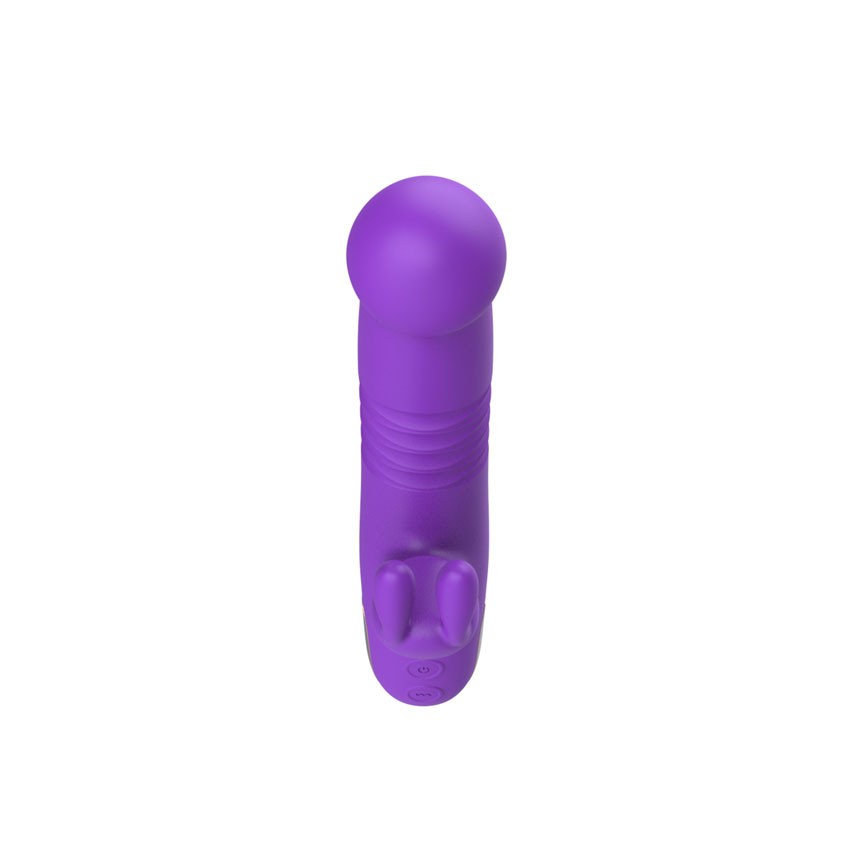 Фиолетовый вибратор-ротатор со стимулятором клитора и возвратно-поступательными движениями - 22,4 см.