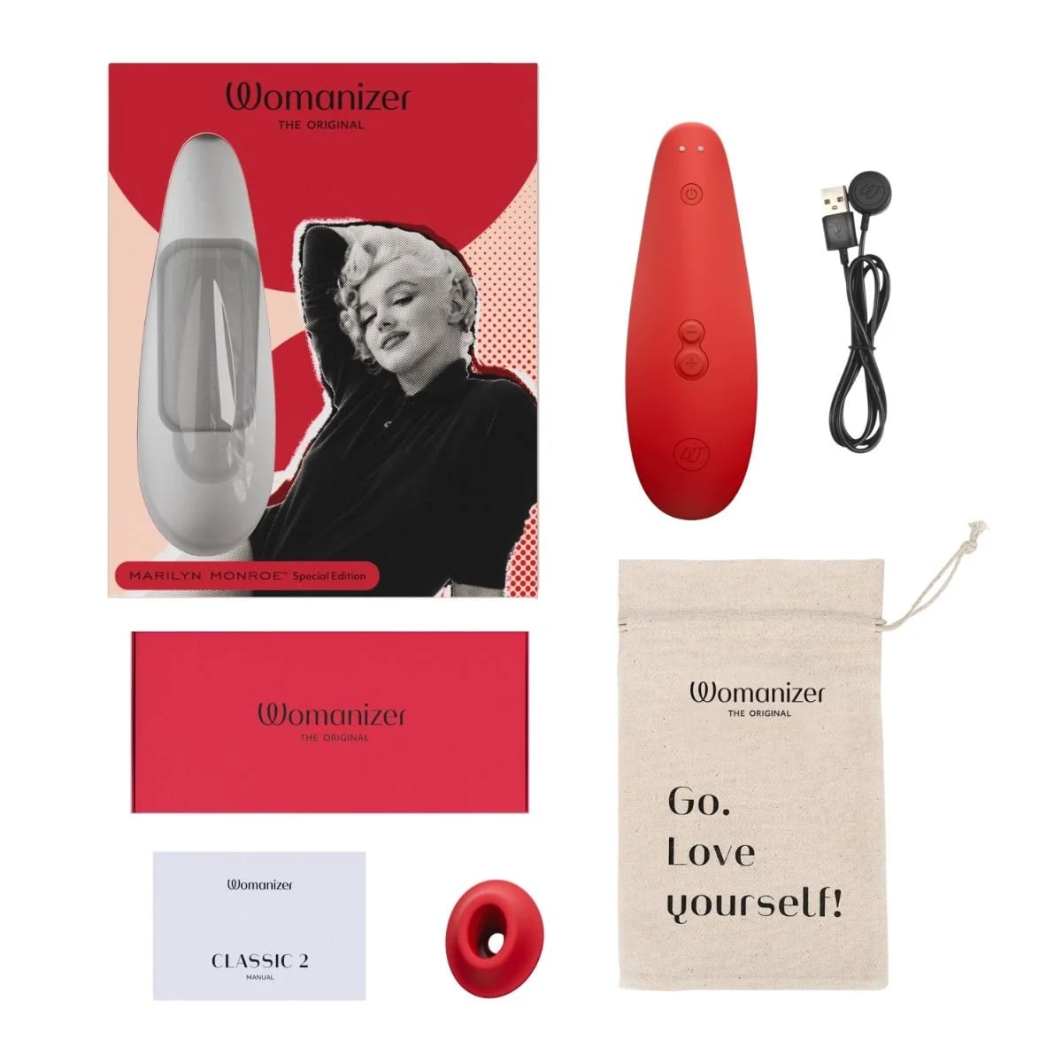 Лимитированная версия вакуумного стимулятора Womanizer Classic 2 выполнена в новом красном цвете, вдохновленным изысканным вкусом Мэрилин Монро. Бесподобная красавица стала в свое время иконой стиля и сексуальности, поэтому Womanizer хочет передать ту же силу самовыражения любой женщине при помощи своего бестселлера среди секс-игрушек. Вас ждет классическое удовольствие в супер-элегантном дизайне!