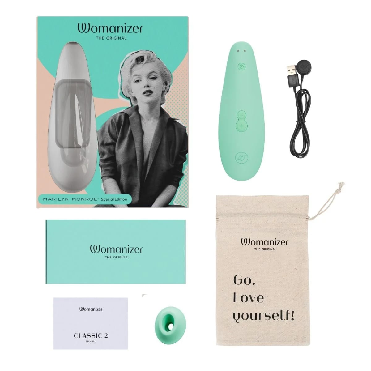 Лимитированная версия вакуумного стимулятора Womanizer Classic 2 выполнена в новом мятном цвете, вдохновленным изысканным вкусом Мэрилин Монро. Бесподобная красавица стала в свое время иконой стиля и сексуальности, поэтому Womanizer хочет передать ту же силу самовыражения любой женщине при помощи своего бестселлера среди секс-игрушек. Вас ждет классическое удовольствие в супер-элегантном дизайне!