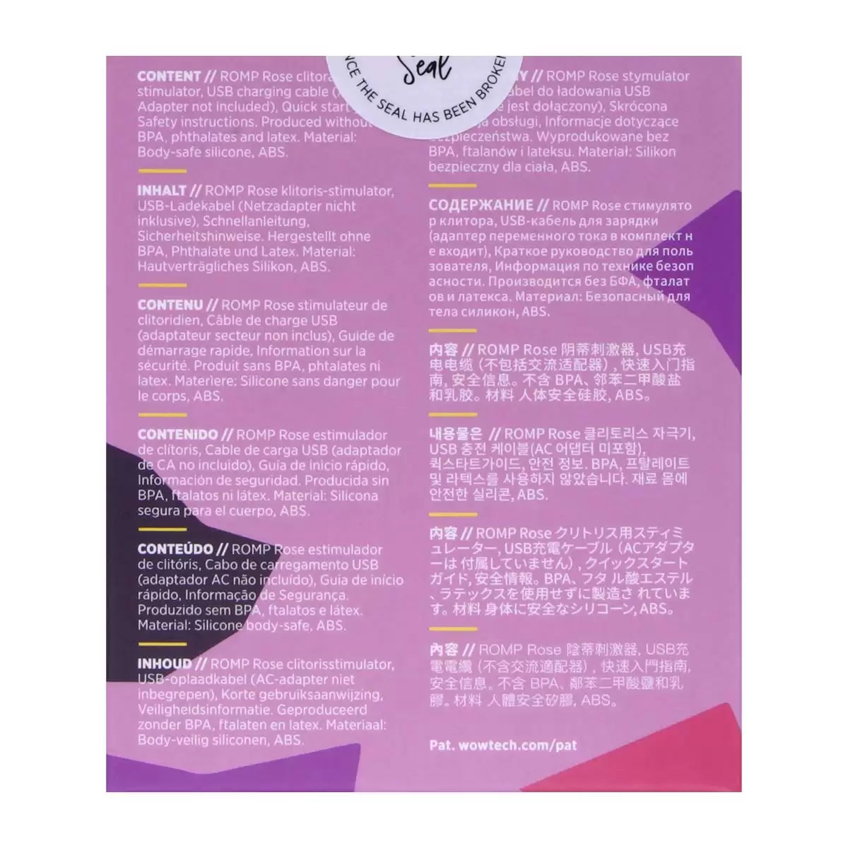 При желании можно нанести небольшое количество лубриканта на водной основе на раструб стимулятора для особенно нежных прикосновений. Очищать Romp Suction Rose можно при помощи воды, мягкого мыла и специальных средств для игрушек.