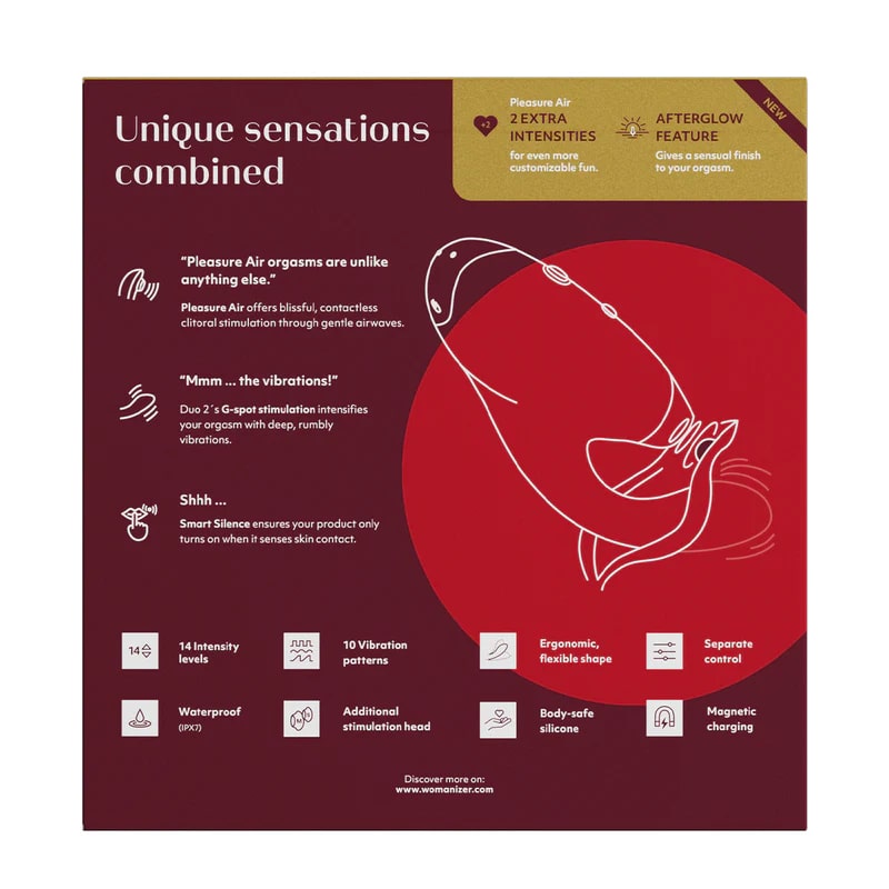 Вибратор с бесконтактной стимуляцией клитора Womanizer DUO 2 бордовый купить со скидкой в секс шопе - lovestoryshop.ru