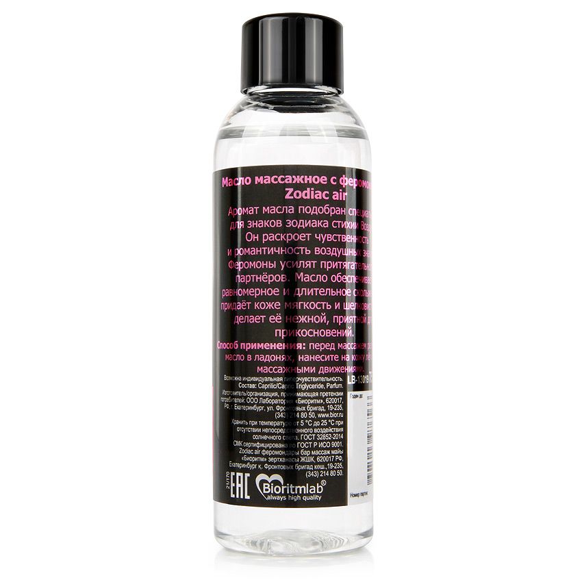 Массажное масло с феромонами ZODIAC Air - 75 мл.