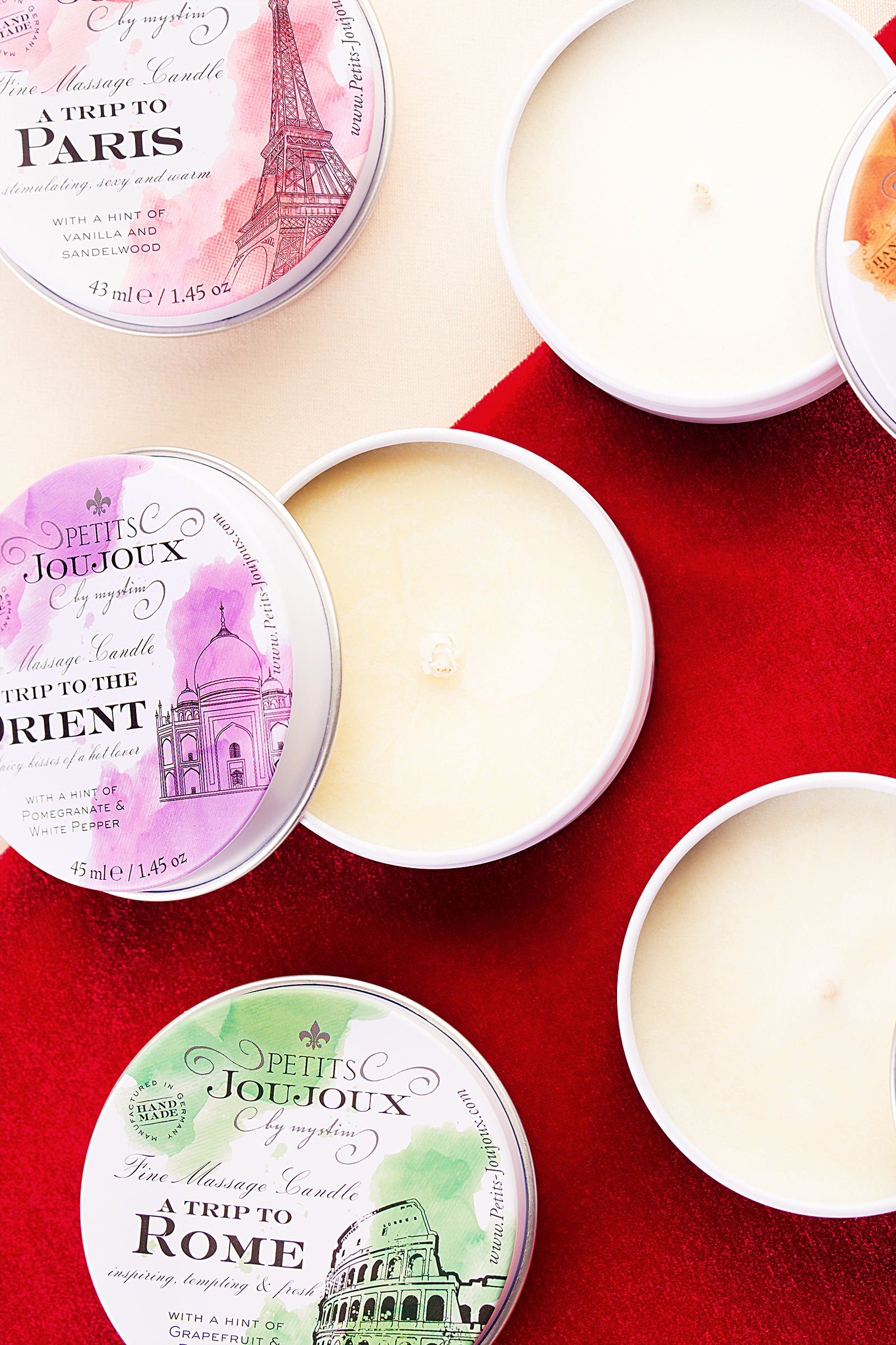 Массажная свеча Mystim Petits Joujoux с роскошным ароматом. Шесть очаровательных ароматов, вдохновленных прекрасными местами всего мира.