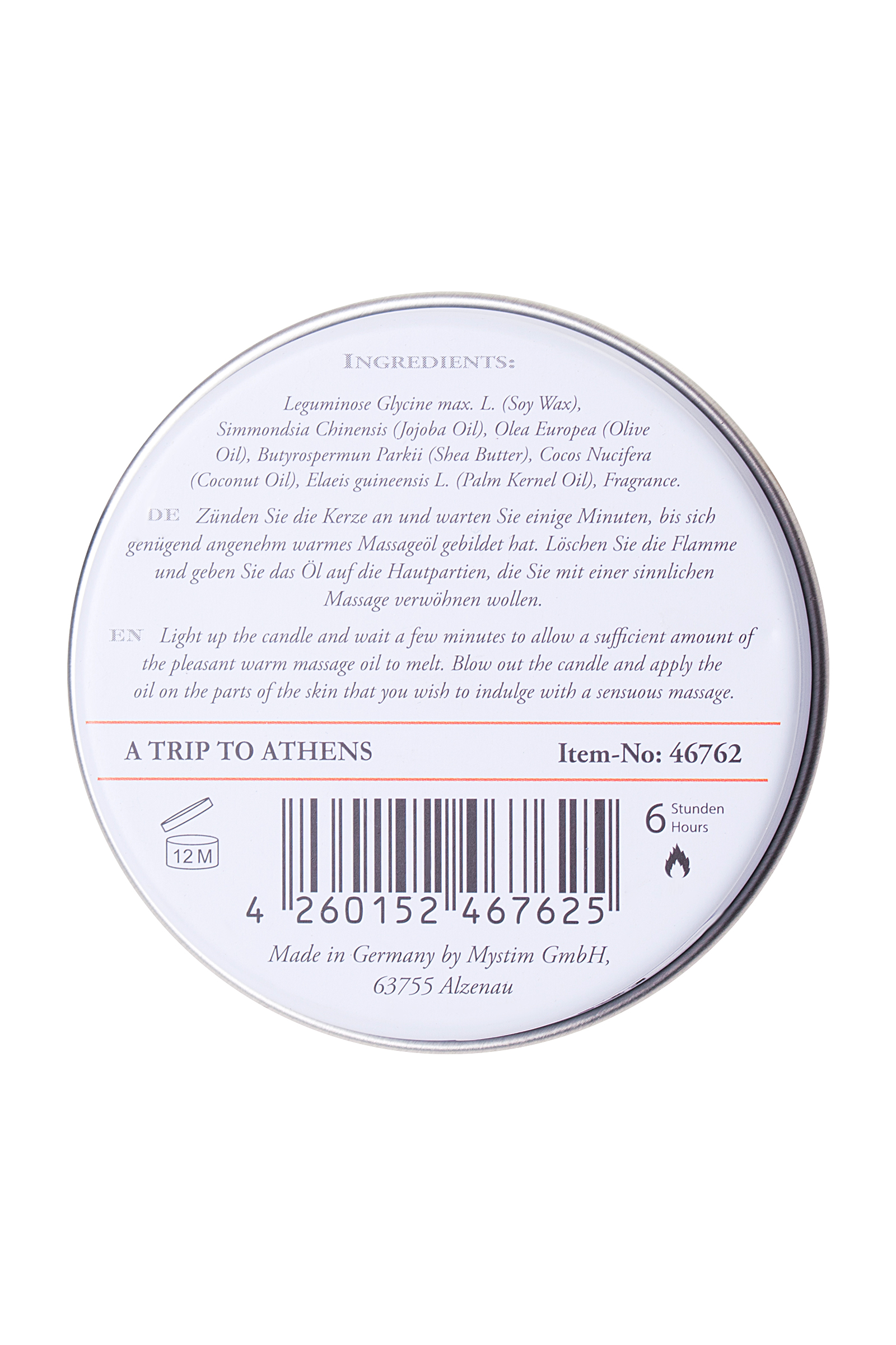 Время горения до 6 часов. Свеча Mystim упакована в металлическую баночку.